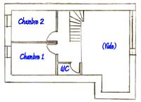 en haut les deux chambres, une avec un grand lit, l'autre avec un